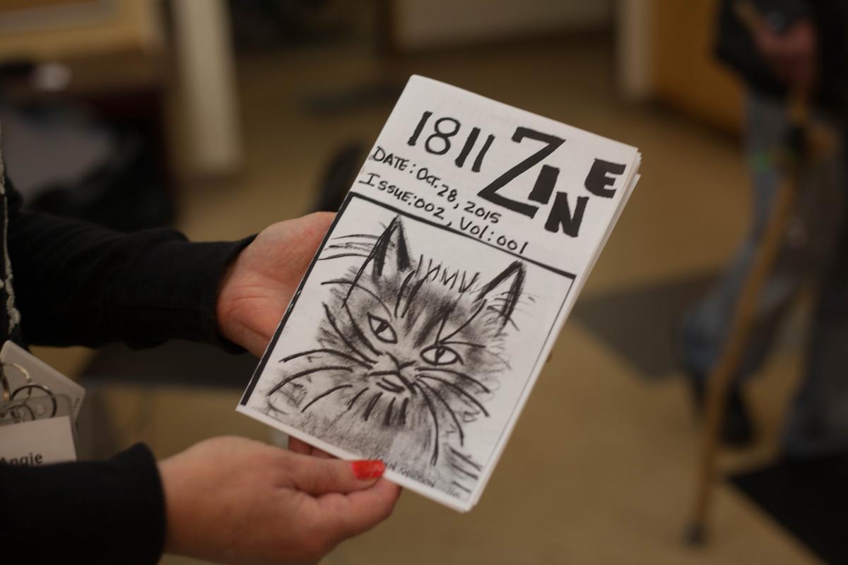 “On the first zine, there’s a statement on the bottom of the cover that says, ‘We would love to let you know who we are,’” said Taylor. “People here have talked to me about how 1811 has a negative reputation in the community. People have a lot of moral judgements about folks who have been homeless, folks who use substances, and the people here really want to be able to speak for themselves and say: No, this is who we are; this is what’s important to us; these are the skills we have, and we actually have a lot to offer.”